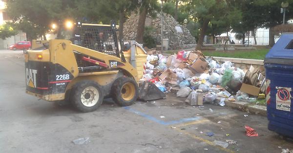 Un foto della raccolta dei rifiuti in Piazza San Francesco