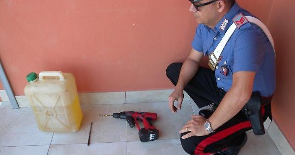 Immediato è scattato il controllo dei militari all’uomo, consentendo così il ritrovamento, nel portaoggetti del motoveicolo, di un trapano a batteria con la punta ancora bagnata di carburante. Dopo una breve ricerca i Carabinieri rinvenivano nei paraggi un’auto parcheggiata con una vistosa macchia di carburante sull’asfalto sottostante che, da accurata osservazione, presentava un perfetto foro circolare sul fondo del serbatoio. Rintracciato il proprietario, uno sfortunato turista di Bari, lo stesso sporgeva immediata denuncia per il furto con danneggiamento subìto.