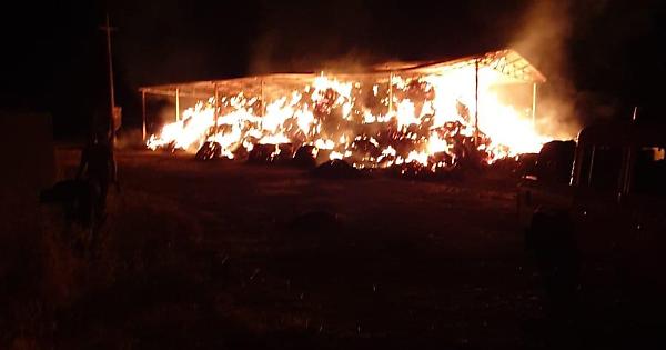 All'interno balle in paglia. Sono in atto operazioni di bonifica
