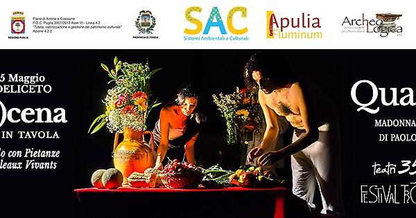 Il menù del progetto “In (s)cena: teatro in tavola” propone per domani la “scapece” tanto amata dall’imperatore Federico II, una zuppa di ceci e farro con battuto di lardo, maccheroni al ferro con brasato di cinghiale e fagottini di vitello farciti di cicoria e caciocavallo con patate lardellate, vini e dolci. I menù medievali sono proposti ad un prezzo di 20 €. Consigliata la prenotazione presso i ristoratori (www.ristoranteballaro.it – Tel. 0881.963126 - info@ristoranteballaro.it)