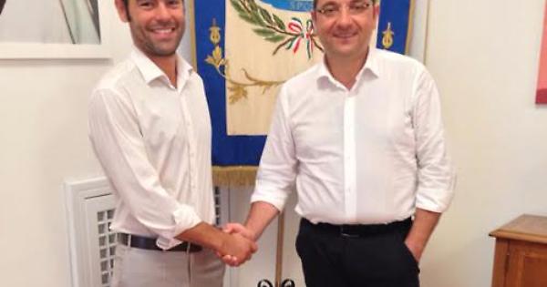 Mirko Lagattolla, giovane manager sipontino che si sta affermando fuori dai confini nazionali, ricevuto in Municipio dal sindaco Riccardi, che dice: “Il problema non è la fuga di cervelli, ma l’incapacità di farli tornare in patria”