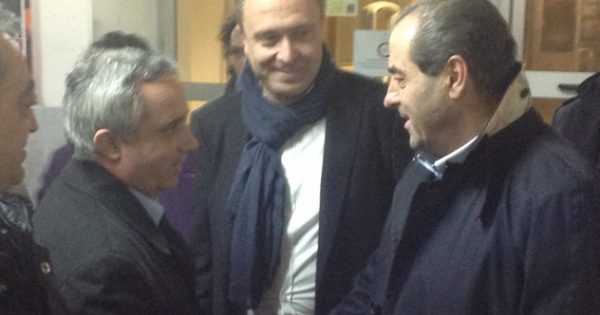 L'arrivo a Foggia di Di Pietro, salutato dal sindaco Mongelli.