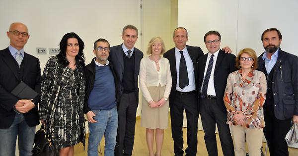 La Ministro Giannini nella segreteria di Leo Di Gioia con Rosario Cusmai e alcuni candidati consiglieri