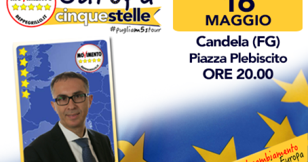 Il senatore barese, ma dal cognome candelese, illustrerà a cittadini ed attivisti il programma del M5S. Un programma suddiviso in 7 punti: referendum per la permanenza nell’euro, abolizione del Fiscal Compact, adozione degli Eurobond, alleanza tra i Paesi mediterranei per una politica comune, investimenti in innovazione e nuove attività produttive esclusi dal limite del 3% annuo di deficit di bilancio, finanziamenti per le attività agricole e di allevamento finalizzate ai consumi nazionali interni e, infine, abolizione del pareggio di bilancio.