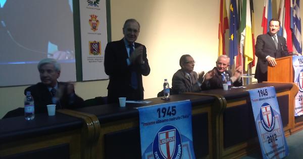 Nella sala gremita, in prima fila Lucio Tarquinio, Gianni Mongiello, Vittorio Salvatori