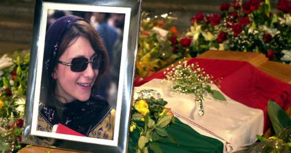 Maria Grazia Cutuli nella foto sopra la sua bara (Ph. Ansa)