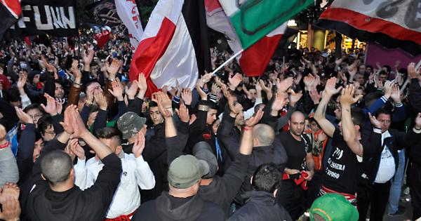 Dai un pallone ad una città e te la ritrovi unita a tirar fuori un urlo di orgoglio. Dappertutto è così, ma a Foggia lo è ancora di più: perché, da sempre, questa città ha eletto il pallone ad emblema identitario della sua comunità; perché il calcio, quello degli anni d'oro, è stata l'unica promozione in serie A che abbiamo conosciuto; perché il pallone ha fatto girare per anni interessi economici e politici; perché la bandiera che tutti ricordano non è quella dei colori ufficiali della città: blu e rosso, ma rossonera. E così, intorno a questa bandiera, sventolata in tante varianti socio-culturali, questa sera la città si è ritrovata a festeggiare la sua squadra che ha saputo risalire in un anno il precipizio del fallimento e arrivare a conquistare la promozione in Lega Pro Unica.