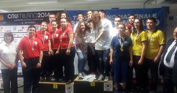 Continua la spedizione positiva del Cus Foggia ai Campionati Nazionali Universitari 2014: nelle gare di Milano, sino ad ora è enplein delle discipline sportive dell'ateneo dauno. Dopo le medaglie del taekwondo, infatti, vanno a medaglia anche i tiratori a segno, che rimangono fuori dal podio nelle gare di carabina e pistola 10 metri, ma conquistano il titolo di vicecampioni italiani nella gara dedicata alle rappresentative. 2152 i punti conquistati in totale da Maria Luana Martone, Chiara De Vivo, Angelo Notarangelo, Saveria Lavista e Leonarda e Michele Cocumazzi, che portano in Capitanata la medaglia d'argento. Nelle gare individuali, il risultato migliore è quello di Maria Luana Martone, che non riesce a difendere il titolo conquistato nel 2013, finendo quarta ai piedi del podio per soli due punti dalla medaglia di bronzo. Oggi al via il programma del tennis.