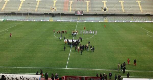 Il Foggia in campo accompagnato dalle "vecchie glorie"