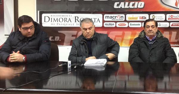 Il primo cittadino Gianni Mongelli in conferenza stampa con la dirigenza rossonera, per sensibilizzare la città a sostenere la prossima stagione del calcio dauno