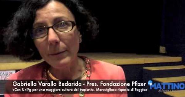Gabriella Varallo Bedarida, presidente della Fondazione Pfizer, a Foggia per la giornata di sensibilizzazione al trapianto, spiega l'iniziativa "Donare per vivere" e la risposta della città.