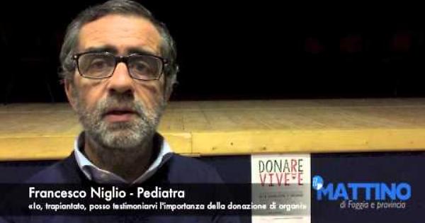 Pediatra dell'Azienda ospedaliero universitaria dei "Riuniti" di Foggia, Francesco Niglio offre la propria esperienza di vita a testimonianza dell'importanza della donazione degli organi per i trapianti