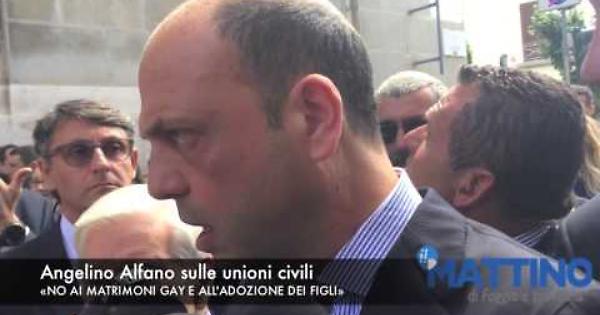 No ai matrimoni tra persone dello stesso sesso e all'adozione dei figli da parte di queste coppie. È la posizione del Ministro dell'Interno Angelino Alfano a Foggia per una convention. Sul resto, Alfano...