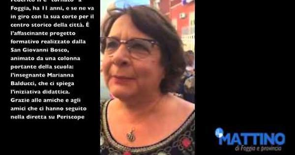 Singolare manifestazione, in costumi d'epoca, della scuola San Giovanni Bosco di Foggia nel centro storico della città per rievocare i tempi e le gesta di Federico II. Ne abbiamo parlato con l'insegnante Marianna Balducci, animatrice del progetto formativo