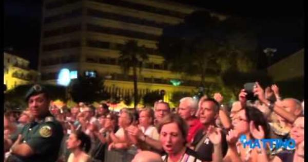 Non solo risate e musica napoletana, ma anche momenti di commozione. Il cantautore trattiene a stento le lacrime quando dedica lo spettacolo ai 'compagni di una vita che non ci sono più': Arnaldo Santoro e Franco Tolomei.