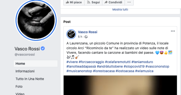 Era proprio questo l’obiettivo con cui l’associazione Arci Laurenzana “Ricomincio da te” ha deciso di realizzare un video in cui i bambini del paese intonano la canzone di Vasco Rossi, “Vivere”, sebbene non si aspettassero un’approvazione del genere. I bambini protagonisti del video avrebbero dovuto iniziare un corso di musica proprio a marzo, mese che è ben impresso nella memoria di tutti per aver segnato l’inizio del lockdown e del distanziamento sociale a causa del Coronavirus. L’associazione che aveva programmato questa attività ha pensato bene di inventarsi un modo originale per stare vicino ai loro bambini, tenendoli impegnati in un progetto musicale in cui si sono lanciati con grande entusiasmo e passione. Così, armati di smartphone, cuffiette, qualche strumento musicale e tanta (tantissima) pazienza dei genitori hanno messo in piedi uno spettacolo in grado di donare un po’ di speranza. Bambini, dai tre ai dieci anni, hanno memorizzato le note del brano di Vasco e il risultato è un video in cui hanno potuto esprimersi e ottenere anche un piccolo riscatto: far sentire la propria voce da un piccolo centro come Laurenzana. Questa voce è arrivata forte e chiara anche a migliaia di chilometri: Vasco Rossi ha apprezzato il video dei piccoli laurenzanesi e ha deciso di postarlo proprio sui suoi profili social, con gli hashtag #celafaremotutti, #forzaecoraggio”, donando forza e speranza a tutti i suoi fan e non solo.