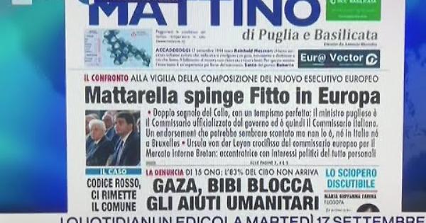 Sulla nostra prima pagina di oggi, 17 settembre 2024, nella rassegna stampa di RaiNews24 condotta da Daniele Lorenzetti e commentata da Massimo Martinelli, direttore editoriale de Il Messaggero. Il giornale è qui