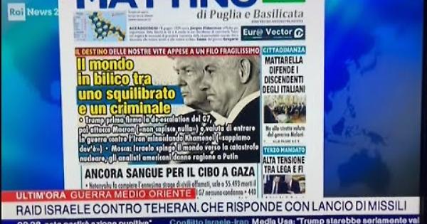 Sulla nostra prima pagina di oggi, 18 giugno 2025, nella rassegna stampa di RaiNews24 condotta da Giuseppina Testoni. Una bravissima Sara Menafra, con Giampiero Gramaglia, spiega le motivazioni infondate dell'attacco di Israele. Il giornale è qui