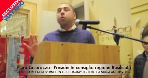 Consentire ai cittadini di votare per il referendum contro le trivelle nello stesso giorno delle votazioni per il rinnovo dei consigli comunali per favorire la partecipazione delle persone. È l'Election-Day che chiede al governo Renzi il presidente del consiglio regionale della Basilicata, Piero Lacorazza, intervenuto a Foggia nella giornata di mobilitazione istituzionale contro le trivelle alle Tremiti. Questo il suo intervento