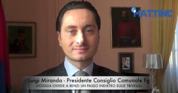 Anche il Consiglio Comunale di Foggia, all'unanimità, chiede al Governo Renzi di fare un passo indietro sulle trivellazioni alla Tremiti. L'ordine del giorno approvato oggi impegna, in tal senso, la Regione e i parlamentari pugliesi ed è stato inviato ai presidenti di tutti i Comuni della Capitanata, del Molise e dell'Abruzzo. Ce ne parla il presidente del Consiglio foggiano Luigi Miranda