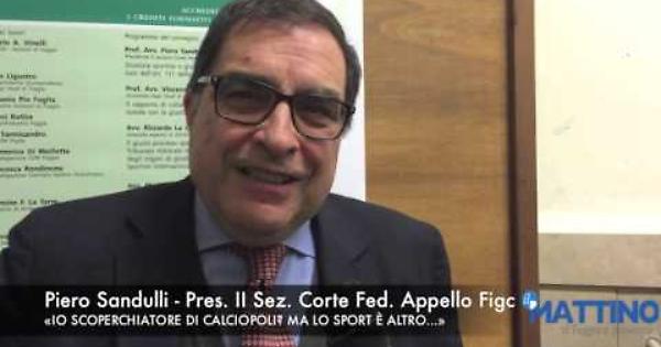 Piero Sandulli, professore ed avvocato, presidente della II Sezione della Corte Federale d'Appello F.I.G.C., è noto per aver scoperchiato Calciopoli. Sabato 20 febbraio è intervenuto a Foggia in un convegno sulla giustizia sportiva organizzato dall'AIGA (Associazione Italiana Giovani Avvocati) di Foggia. Ecco cosa ci ha detto.