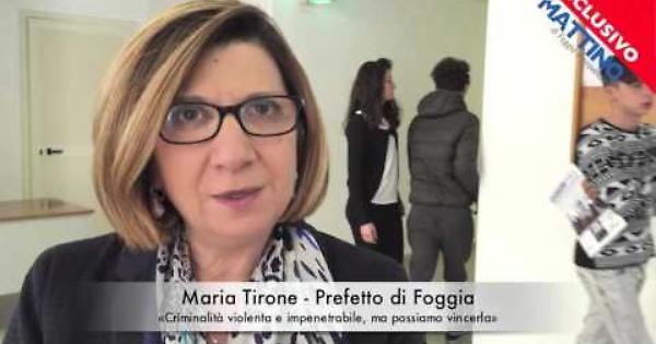 Violenta, aggressiva, impenetrabile. Sono gli aggettivi che il Prefetto di Foggia, Maria Tirone, mutua dalla relazione della Direzione Distrettuale Antimafia per definire la criminalità foggiana; che, però, si può vincere. Ecco le straordinarie parole del Prefetto in questa intervista rilasciataci a margine dell'incontro avuto con gli studenti foggiani dell'Istituto Tecnico Economico "Blaise Pascal"