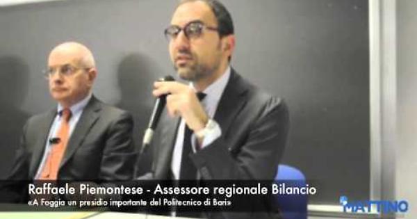 L'assessore regionale al Bilancio, il foggiano Raffaele Piemontese, all'inaugurazione del corso di laurea in Ingegneria dei sistemi logistici per l'agroalimentare, sottolinea l'importanza di un presidio a Foggia del Politecnico di Bari