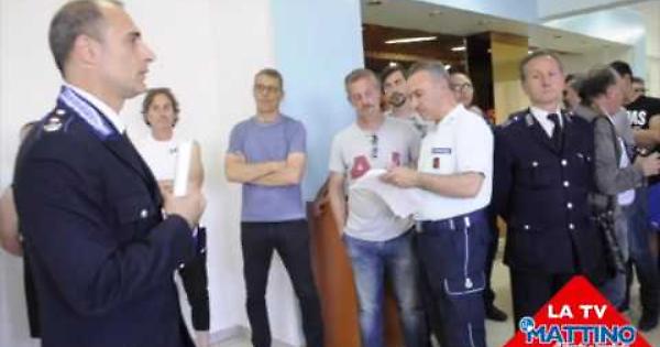 Il comandante la Polizia Penitenziaria di Foggia, Luca Di Mola, accoglie nella sala bar della Casa Circondariale la squadra del Foggia Calcio e quella del vivaio rossonero per dare indicazioni sulla visita ai detenuti, tenuta questo pomeriggio.