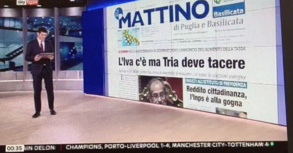Il tema, che divide il governo, campeggia anche sulla prima pagina del nostro giornale ripresa nella rassegna stampa di SkyTg24, con il commento rassicurante del viceministro di Tria, Laura Castelli, originaria della provincia di Foggia.