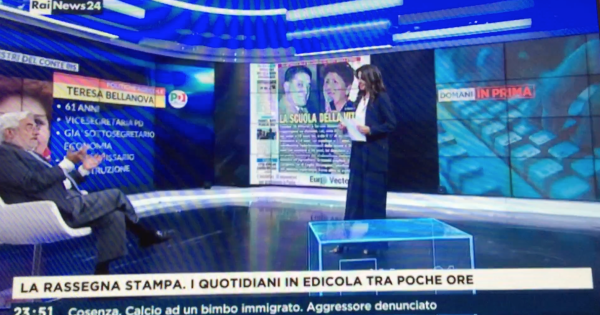 A partire dalla nostra prima pagina, la bella riflessione suscitata da Emanuela Bonchino nella rassegna stampa dei giornali di oggi di RaiNews24 condotta su RaiNews con il suo ospite: il direttore Paolo Gambescia.