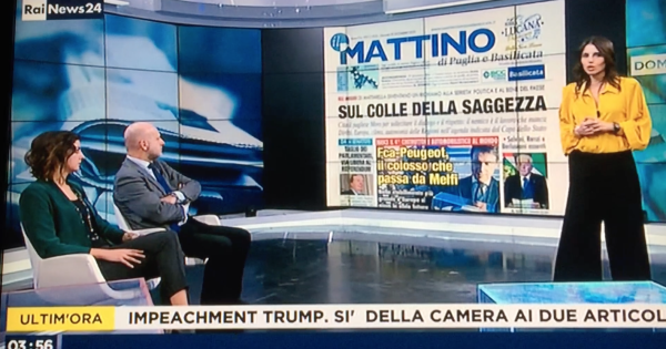 Tutto questo sulla nostra prima pagina, nella rassegna stampa di RaiNews24 condotta da Emanuela Bonchino su Rainews con degli ospiti eccezionali: Roberto Zichittella di "Famiglia Cristiana" e Francesca Martelli di "Open"