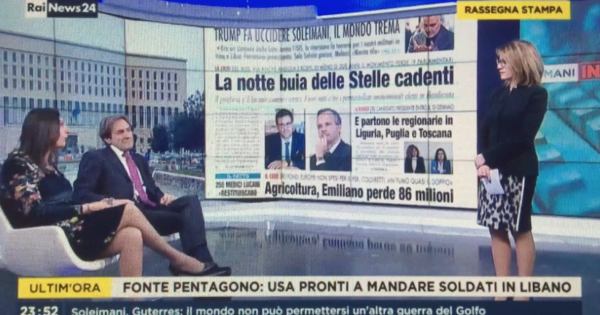 L'uccisione del generale iraniano da parte degli americani sconvolge lo scenario geopolitico e crea apprensione sull'evoluzione del conflitto. Altri scossoni nel M5S: vanno via i deputati Angiola, professore universitario a Foggia, e l'ingegnere lucano Rospi.