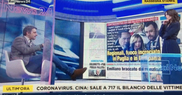 Plauso all'orgoglio meridionale del Direttore di "Cultura e Identità" Alessandro Sansoni, napoletano d'origine, ospite di Emanuela Bonchino nella rassegna stampa di RaiNews24 dei giornali di oggi su Rainews.