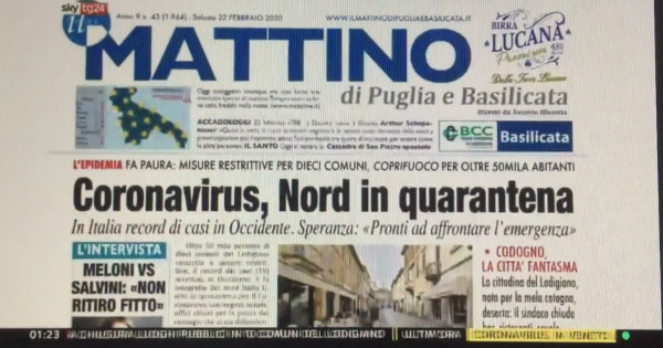 Il focus di Paolo Fratter nella rassegna stampa di SkyTg24 dei giornali di oggi, con un bel reportage di Carlo Imbimbo da Codogno, una città resa fantasma.