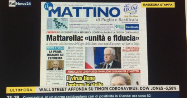 Dario Marchetti ne parla nella rassegna stampa di RaiNews24 dei giornali di oggi su Rainews con i suoi ospiti: il Direttore de "Il Giorno" Sandro Neri, Gian Maria De Francesco (Il Giornale) e Luciano Tirinnanzi (Panorama)