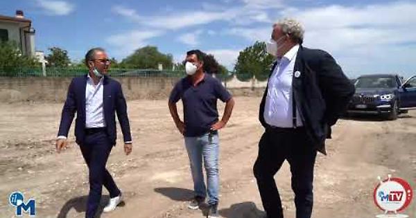 La separazione tra le due aree di cantiere è rappresentata dalla esistente viabilità comunale (via Castelluccio), tuttora in esercizio, il cui smantellamento richiede la riprotezione delle interferenze dei sottoservizi presenti (fornitura idrica, rete fognaria, linee di telecomunicazione e trasmissione dati) e la demolizione di alcuni immobili, già acquisiti da Aeroporti di Puglia con gli espropri, che interferiscono con i nuovi tracciati, oltre che con le superfici di delimitazione ostacoli definite a protezione della navigazione aerea. Relativamente agli interventi sopracitati sono stati predisposti gli atti amministrativi per la ripresa dei lavori.