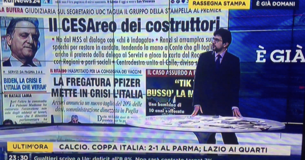 Ne parlano con Giancarlo Usai, nella rassegna stampa di RaiNews24 su Rainews, Francesco Maselli (L'Inkiesta) e Nicola Graziani (Agi), con la nostra prima pagina di oggi, 22 gennaio 2021.