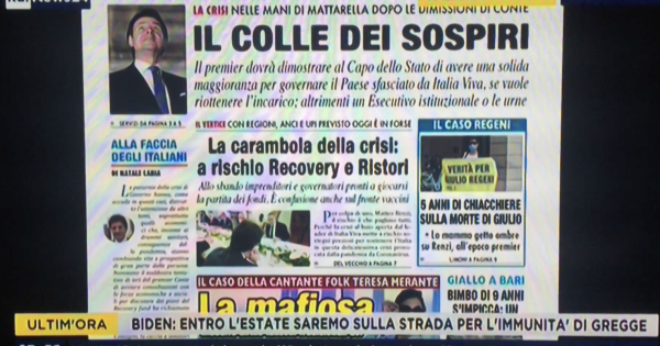 Ecco cosa ne pensa Aldo Cazzullo nella rassegna stampa di RaiNews24, condotta da Giuseppina Testoni su Rainews, con la nostra prima pagina di oggi, 26 gennaio 2021