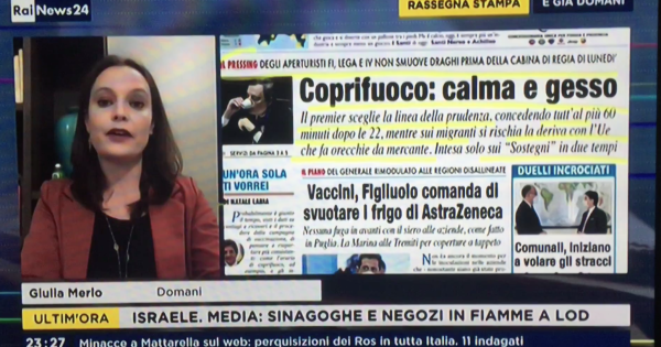 I commenti di Gianfranco Pasquino e Giulia Merlo, con la nostra prima pagina di oggi, 12 maggio 2021, nella rassegna stampa di RaiNews24 condotta da Giancarlo Usai su Rainews. Il giornale puoi scaricarlo qui