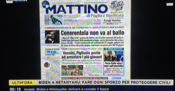 La nostra prima pagina di oggi, 18 maggio 2021, nella rassegna stampa di RaiNews24 condotta da Emanuela Bonchino su Rainews, con un commento di Giampiero Gramaglia. Potete scaricare qui il giornale