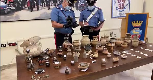 Olle, brocche e piccoli vasi in terracotta oltre a 15 monete e una medaglia d'oro: sono alcuni dei 54 reperti archeologici rintracciati nei giorni scorsi dai carabinieri a Foggia all'interno di un'abitazione del quartiere "Ferrovia". Il materiale, che risale presumibilmente al periodo compreso tra il VI e III secolo a.c. e ha un valore di circa 15 mila euro, è stato rintracciato e sequestrato dai Carabinieri di Foggia e verrà affidato in custodia al personale della Sovraintendenza in attesa della definizione dell'iter processuale. La coppia domiciliata nell'abitazione dove si trovano i reperti è stata denunciata per impossessamento illecito di beni culturali appartenenti allo Stato. Fondamentale, per il successo dell'operazione, è stata la collaborazione con il personale della Sovraintendenza Archeologia Belle Arti e Paesaggio per le province di Foggia e Barletta-Andria-Trani, che ha qualificato quanto rinvenuto dai militari dell'Arma "d'interesse storico-archeologico". E' stato poi un importante esperto di numismatica a inquadrare il materiale in un preciso arco cronologico e a effettuare una stima del suo valore economico.