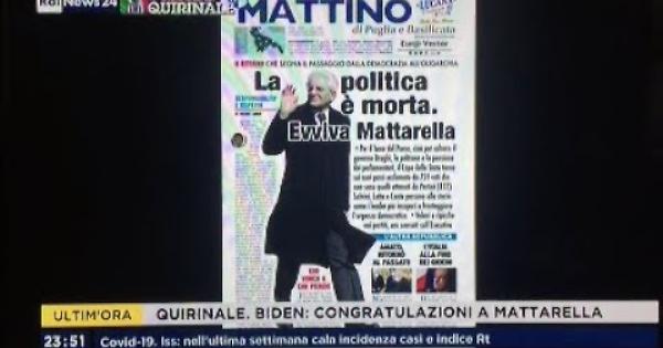 Per il bene del Paese, cioè per salvare il governo Draghi, le poltrone e la pensione dei parlamentari, il Capo dello Stato torna sui suoi passi acclamato da 759 voti che non sono quelli ottenuti da Pertini (832). Salvini, Letta e Conte passano alla storia come i leader più incapaci a fronteggiare l’urgenza democratica. La nostra prima pagina di oggi nella rassegna si RaiNews24 con un commento della filosofa Maura Gancitano. Il giornale è qui