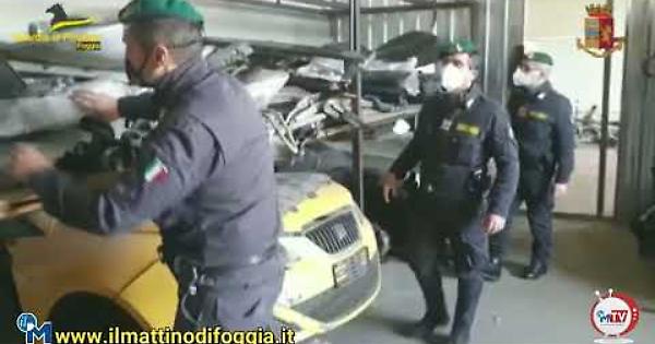 Due autovetture “cannibalizzate”, interi blocchi motore, sportelli, cofani, assali, pneumatici e tanto altro tra gli oltre 1200 componenti per auto sequestrati dalla Guardia di Finanza con l’ausilio della Polizia di Stato nel corso di un'attività di controllo economico del territorio avviata dai finanzieri ed estesa all’interno di 3 capannoni di un autoparco di Cerignola (FG).