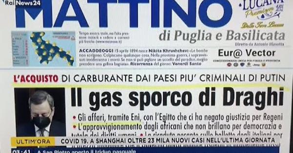 Giorgio Dell'Arti, fondatore del Venerdì di Repubblica e direttore dell'edizione del lunedì del guerrafondaio "Il Foglio" definisce «schierati» i giornali critici con Draghi, che ha tutta l'informazione ai suoi piedi. Manuela Donghi è la sola capace di una analisi lucida su quanto sta accadendo per l'emergenza energetica provocata dalle sanzioni imposte alla Russia che ora va a vendersi il gas all'Asia. Il giornale è qui