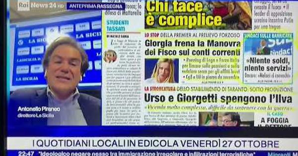 Sulla nostra prima pagina di oggi, nella rassegna stampa di RaiNews24 condotta da Francesca Biagiotti, commentata dal direttore de "La Sicilia" Antonello Piraneo. Il giornale è qui