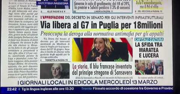 La nostra prima pagina di oggi con importanti notizie sull'eccidio a Gaza, le elezioni in Basilicata, il summit del G7 in Puglia