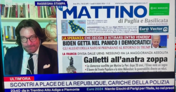 Sulla nostra prima pagina di oggi, 8 luglio 2024, nella rassegna stampa di RaiNews24 condotta da Chiara Paduano, con il commento di Francesco Del Vigo, vicedirettore de "Il Giornale". Il giornale è qui